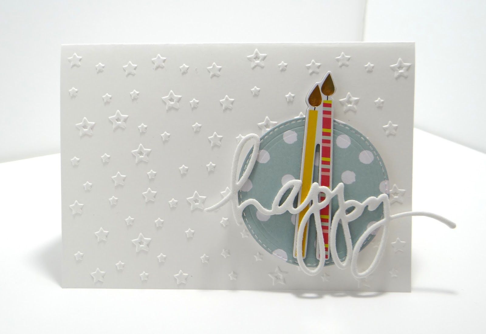 Después de darle varias vueltas, me decidí por utilizar una carpeta de embossing de estrellitas que todavía no había tenido tiempo de estrenar y que el resultado.. me ha enamorado! La vemos?